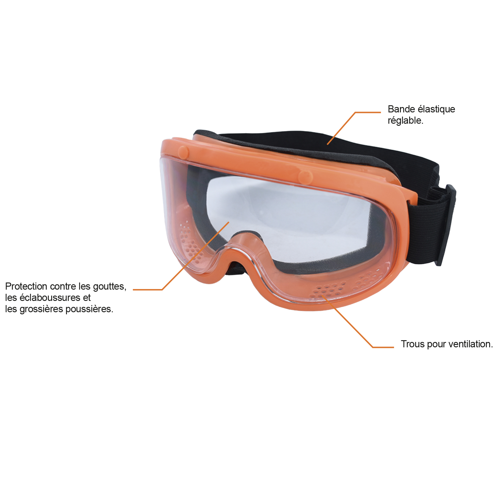 Lunette-masque à oculaire monobloc polycarbonate incolore large champ de vision et profil enveloppant.