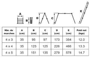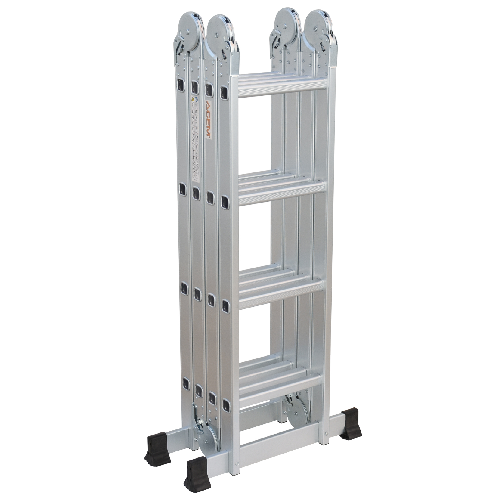 ■ Échelle multi-position en aluminium utilisable en 6 positions différentes: échelle simple, escabeau et plateforme de travail.