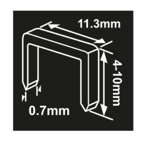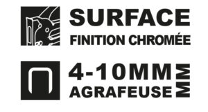 Agrafeuse corps en acier à finition chromée. Poignée verrouillable. Accepte les agrafes à bords rectangulaires 4-10mm.