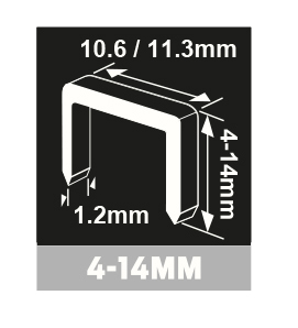 ■ Agrafeuse corps en acier à peinture époxy. Poignée verrouillable. Réglage de la puissance grâce au bouton du dessus afin de régler la force avec laquelle les agrafes sont éjectées. Accepte les agrafes à bords rectangulaires 4-14mm.