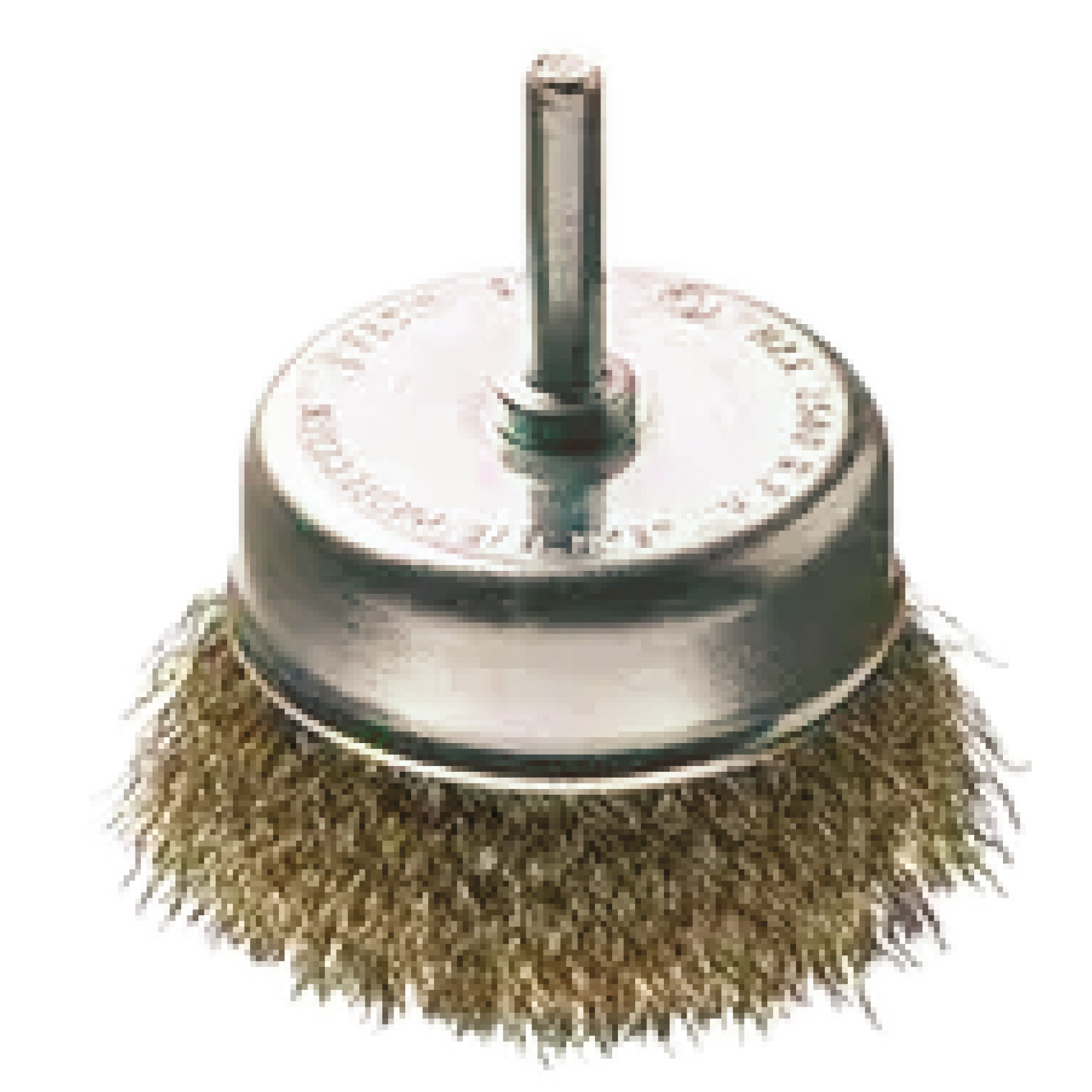 ■ Brosse circulaire en forme de coupe sur tige de 6 mm avec fil laitonné de diamètre 0.35mm. Idéale pour le nettoyage de rouille, peintures, écaillages et ébavures et adhérences en général, intérieur de tuyaux, moules, etc.