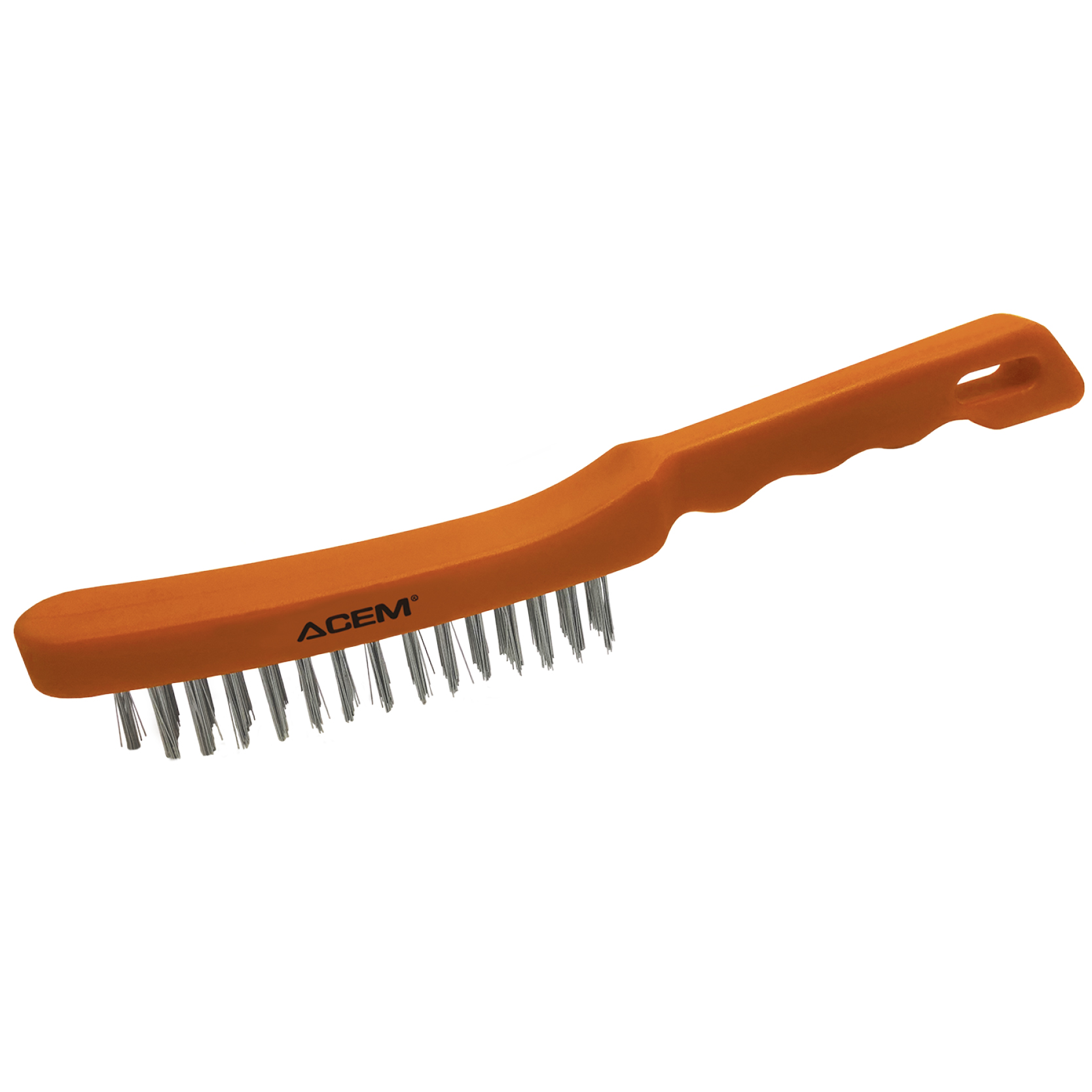 Brosse à main avec fil en acier de diamètre 0.35mm. Idéale pour le nettoyage nettoyage d’écaillages, sur des pièces soudées, de fonderie, forge ou travaux lourds dont le nettoyage est laborieux.