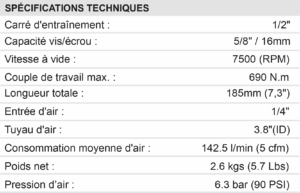 ■ La clé à chocs pneumatique CP01 est équipée d’un mécanisme de percussion offrant un couple de serrage pouvant atteindre 690 Nm. Elle est idéale pour les applications lourdes de montage et de démontage, ainsi que pour les réparations automobiles et l’entretien, tout en garantissant des performances et un contrôle exceptionnel.