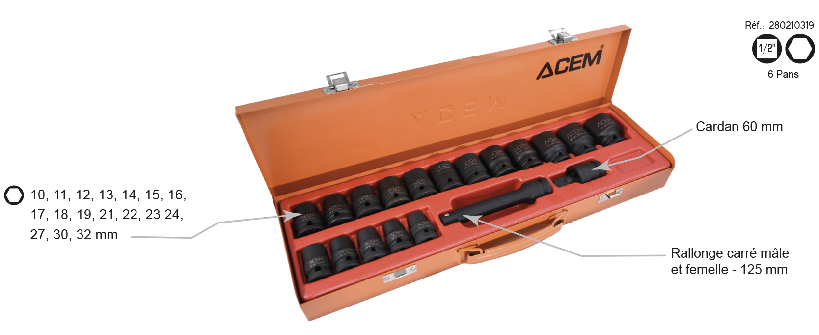 210319 – Coffret de douilles Impact 1/2″