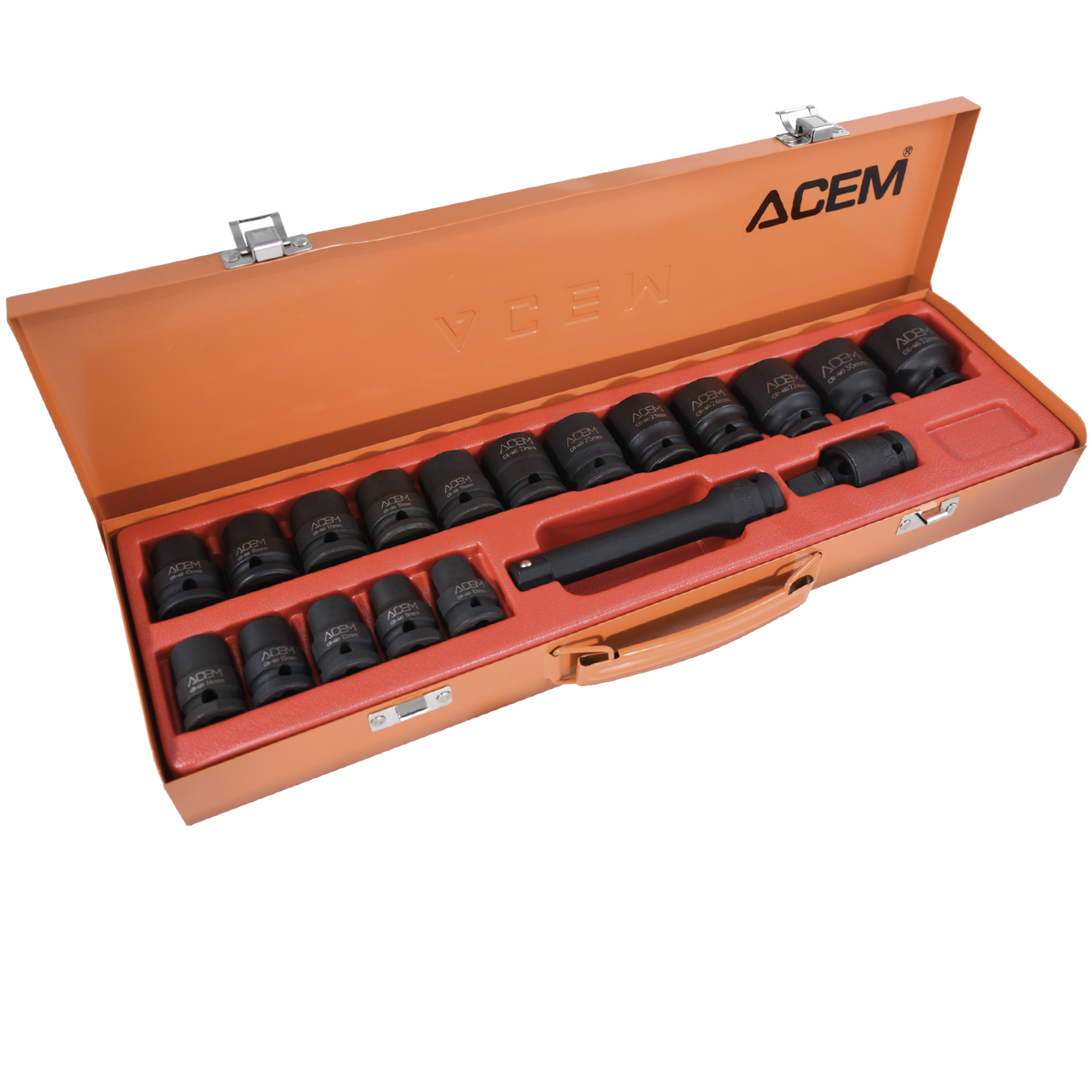 • Coffret métallique de 17 douilles et 2 accessoires.