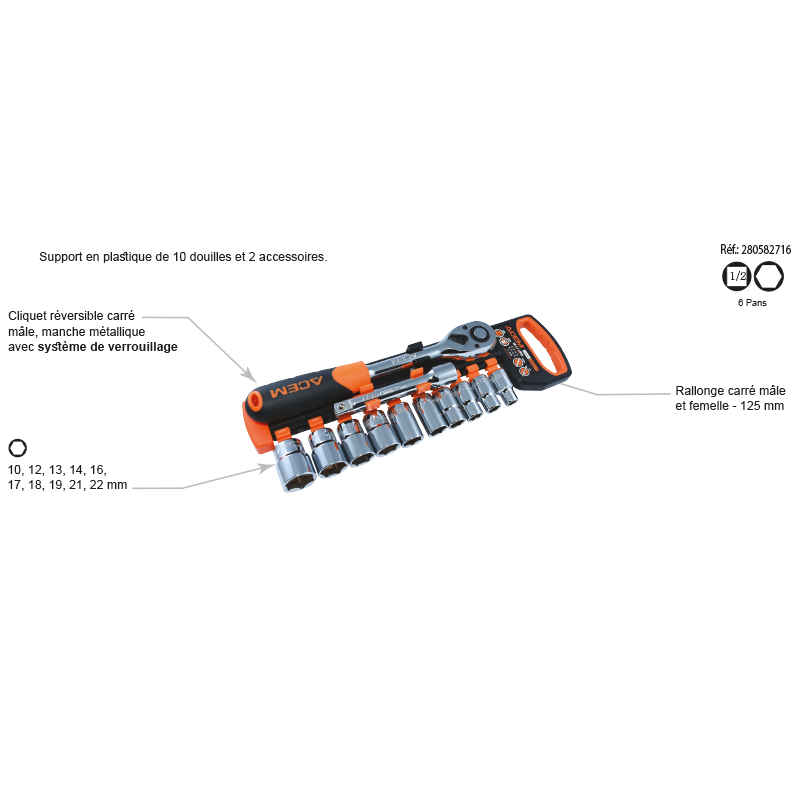 • 10, 12, 13, 14, 16, 17, 18, 19, 21, 22 mm.Produit ajouté avec succès à la liste des devis