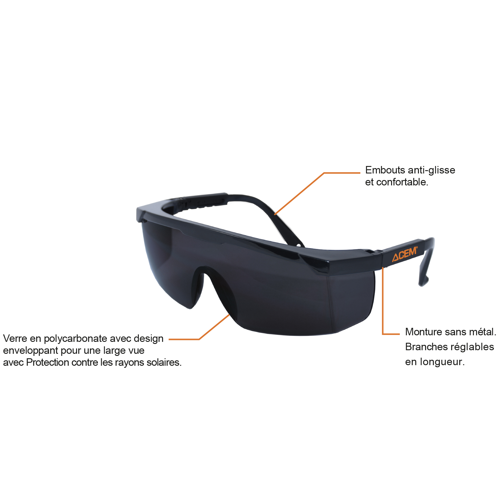 ■ Lunettes de protection à monture noire brillante et oculaire monobloc polycarbonate noir.