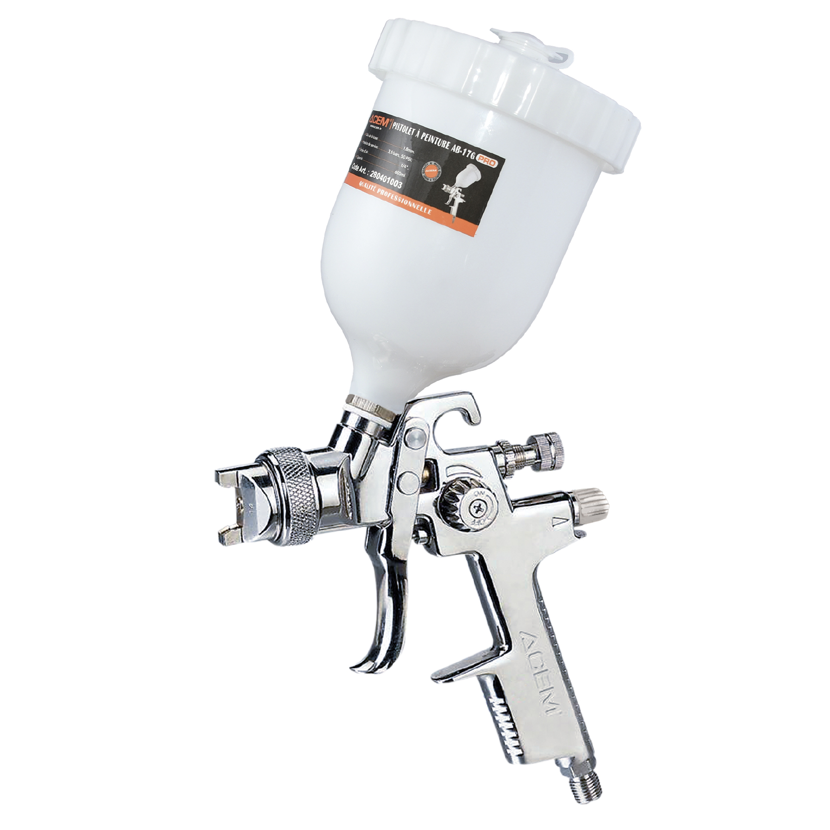 Chapeau en Laiton: Faible consommation d’air avec haute qualité d’application Livré avec son gobelet en plastique à alimentation par gravité de 600 ml.