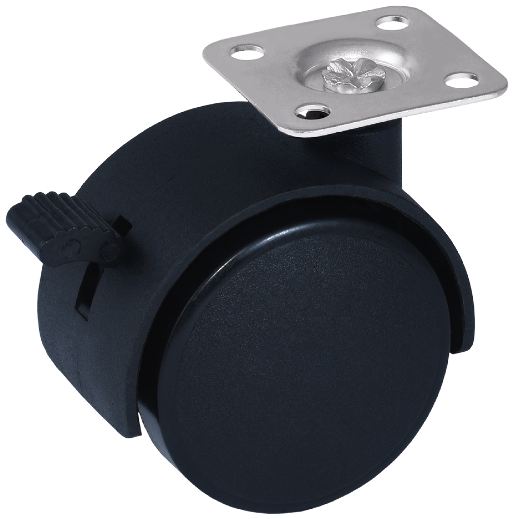 ■ Roue de table pivotante avec blocage totale, à double galets avec plaque